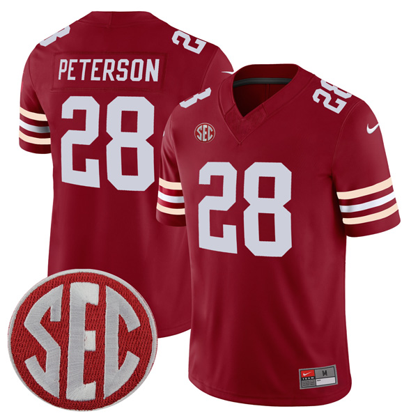 Showcase Sooners history with the Adrian Peterson Oklahoma Sooners Football Crimson Alternate Stitched Jersey w/ SEC Patch. Crafted with stitched details and embroidered Oklahoma logos, this jersey celebrates both Peterson’s legacy and the pride of Sooner Nation. A perfect choice for Oklahoma fans wanting a slightly different take on crimson tradition.