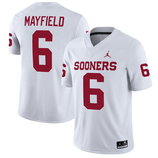 Bring the Oklahoma Sooners tradition on the road with the Baker Mayfield White Away Stitched Jersey, designed with precision to showcase OU pride. Highlighting the University of Oklahoma colors in a clean away design, this jersey comes with fully stitched numbers, embroidered Baker Mayfield nameplate, and carefully applied team logo patch. Represent the Sooners wherever you go and display Oklahoma state pride with this standout away football jersey.