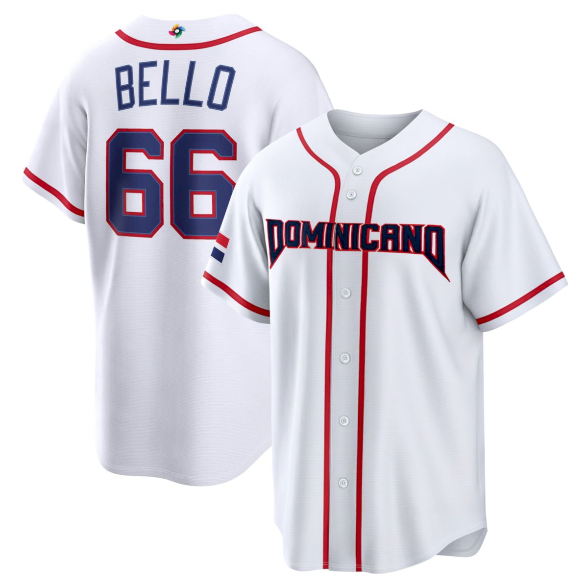 This design highlights Brayan Bello, a talented pitcher representing Dominican Republic Baseball. Known for his developing command and powerful pitching arsenal, Bello continues to grow as an important part of the Dominican pitching future.