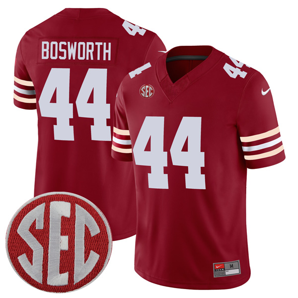 Stand tall in crimson with the Brian Bosworth Oklahoma Sooners Football Crimson Alternate Stitched Jersey w/ SEC Patch. This alternate design features stitched numbers, name, and embroidered logos that reflect Oklahoma state pride and the enduring Sooner spirit.