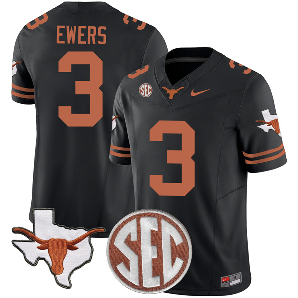 Bring a modern edge to your Horns gear with the Quinn Ewers Texas Longhorns Football Black Vapor F.U.S.E Limited Stitched Jersey w/ SEC Patch. Featuring stitched player name, embroidered number, and the iconic Longhorns logo, this University of Texas jersey celebrates state pride and showcases the standout talent of Quinn Ewers for fans who want style and tradition in one piece.