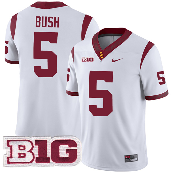 Reggie Bush USC Trojans Football White Away Game Stitched Jersey w/ B1G Patch