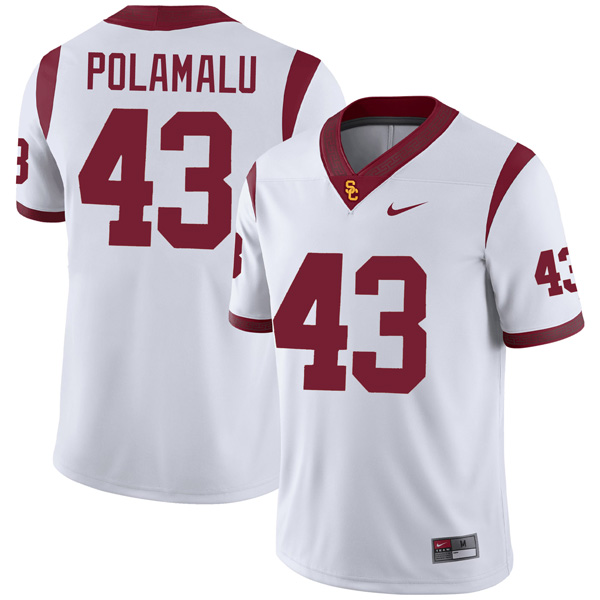 Cheer on the Trojans with the Troy Polamalu USC Trojans Football White Away Game Stitched Jersey. Designed with stitched graphics and embroidered detailing, this piece captures USC spirit and honors one of California’s most celebrated defenders while showcasing state pride through the Trojans colors and logo.